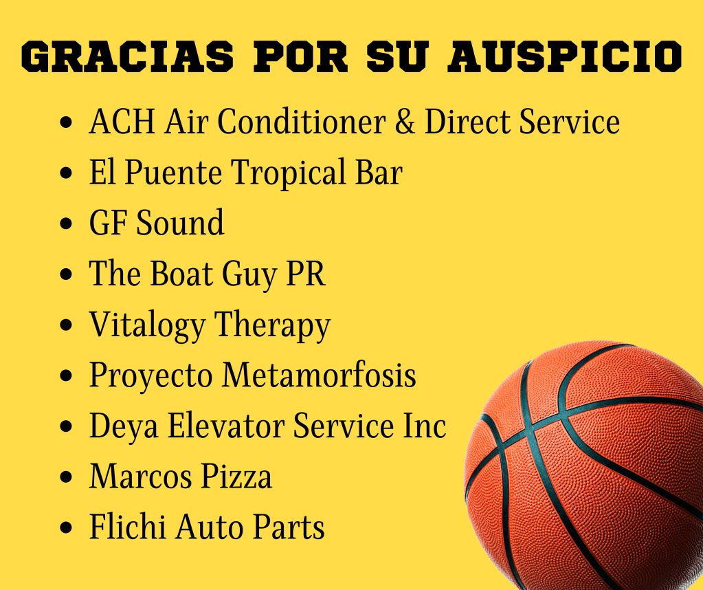 Gracias a las siguientes firmas comerciales que auspiciaron el uniforme que utilizarán los(as) jugadores(as) del equipo de baloncesto de la FPSD.