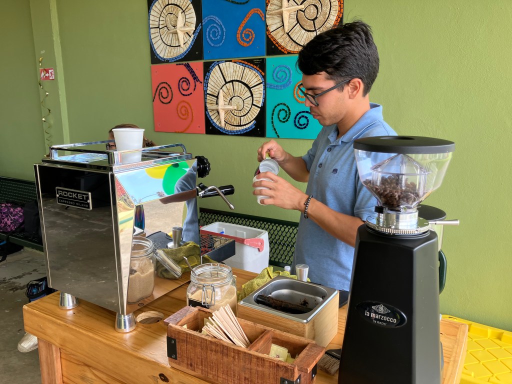 Agradecemos al barista y propietario de la firma Dos Tazas Coffee Gerard Durieux; por colocar una estación de café para el disfrute de los presentes. Sin duda fue un área muy visitada y quienes degustaron esta famosa bebida, quedaron impresionados con el sabor del café.