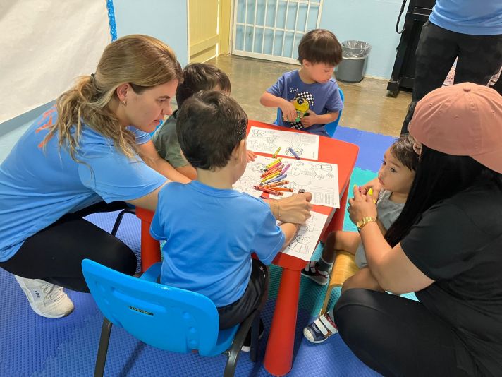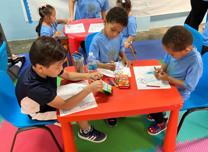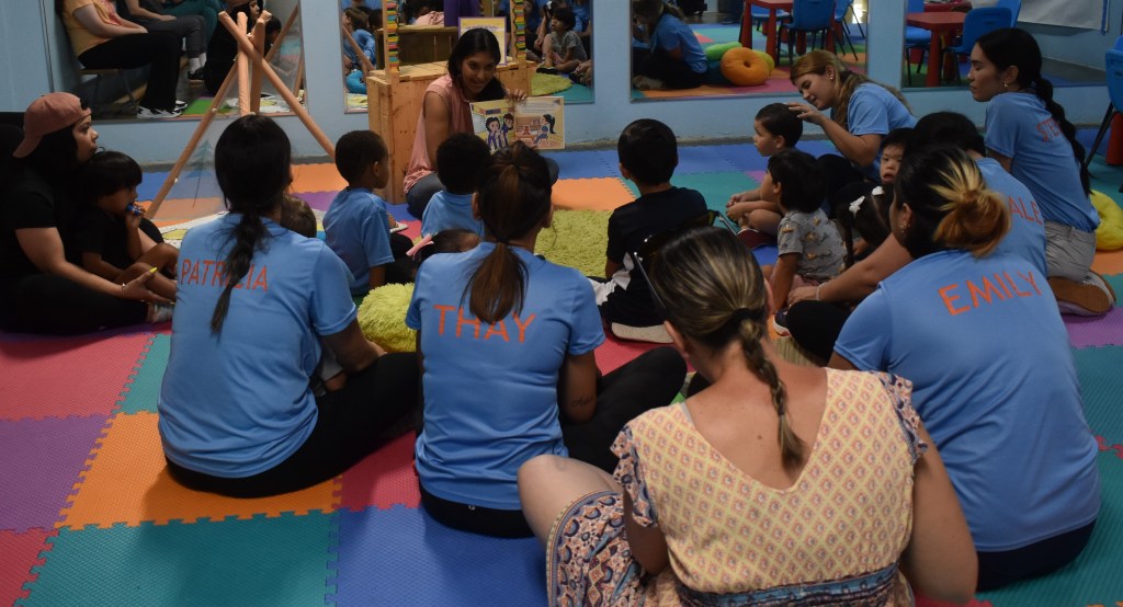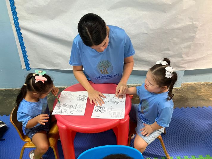 Luego de finalizar la lectura, la autora compartió con los participantes que tuvieron la divertida tarea de colorear una página alusiva al personaje principal del cuento. El Centro PASITOS, fomenta la lectura de cuentos y este, es doblemente especial. Y es que como bien destaca la contraportada del libro, María Isabel, es una niña con síndrome de Down que ante los nervios del primer día de clases recibe la atención y amistad de dos niñas: Sofía y Mariana. Con el pasar del tiempo, las tres niñas aprenden el valor de la amistad verdadera que no conoce de límites, pero sí de la aceptación de las diferencias.