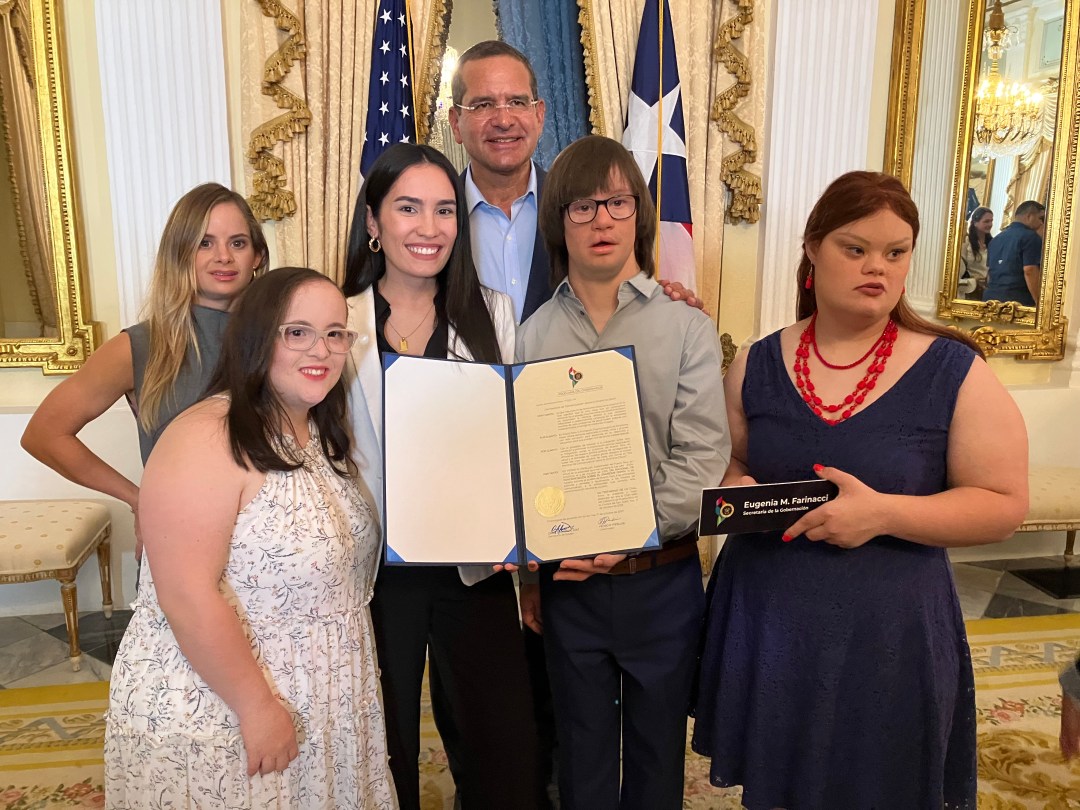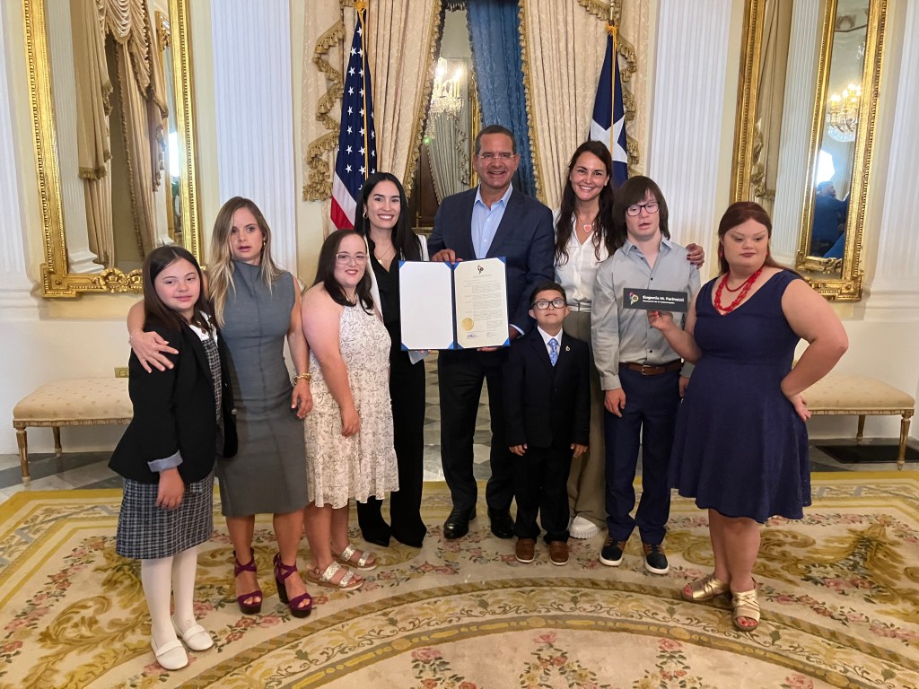 El martes, 17 de octubre fuimos invitados a la Fortaleza para recibir de manos del gobernador la Proclama que firmó, leyó y que, además, declara el primer lunes de cada mes de octubre como el Día nacional de la concienciación sobre el Síndrome Down en Puerto Rico. Los participantes Natalia Colón y Christian Solivan acompañaron a la directora ejecutiva, Stephanie Avila Berríos a recibir la proclama. Agradecemos el compromiso del primer ejecutivo de PR, Pedro Pierluisi, con las personas que padecen esta condición y el establecimiento de política pública a los efectos de aportar a su mejor desarrollo e inclusión social.