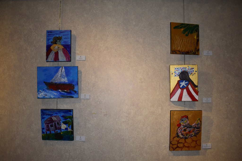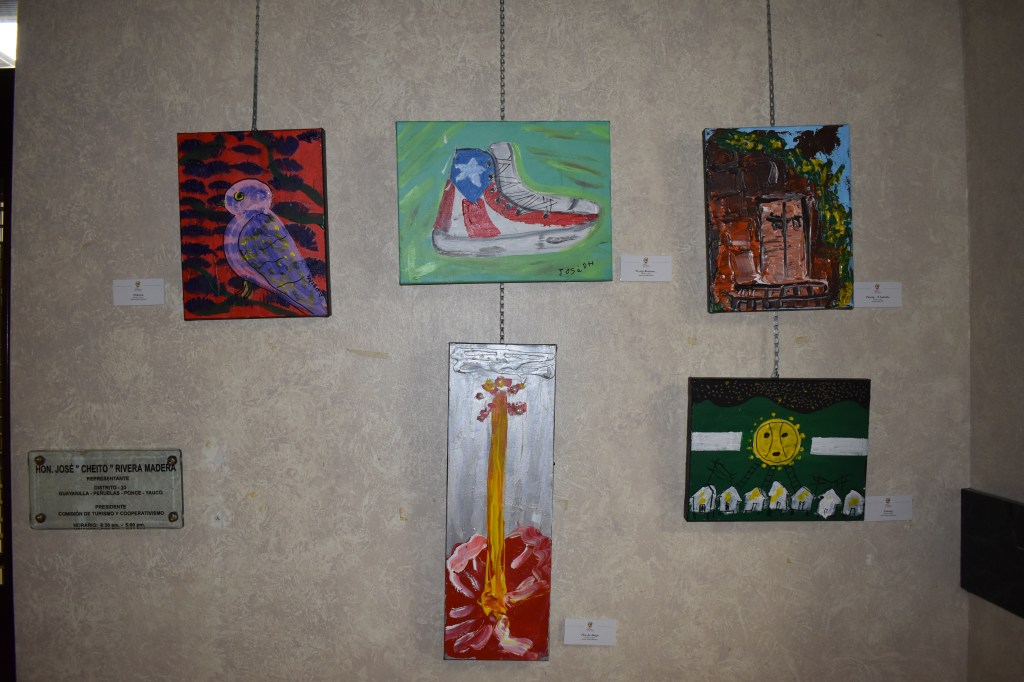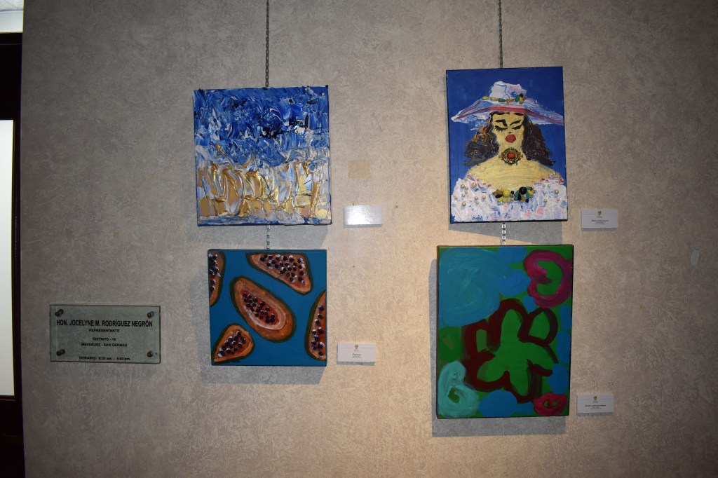 Al culminar el acto de apertura -que se celebró en la Sala Julio Tomás Martínez- pasaron a la Galería Tous para el corte de cinta oficial. Pero antes, la artista Marililin Rivera, integrante del Colectivo ArteVivo, sorprendió al presidente de la CRPR obsequiando una de sus obras para que esté permanentemente, en el Capitolio. La obra se titula: Reyes de corazón (medio mixto) y mide 70×48.
