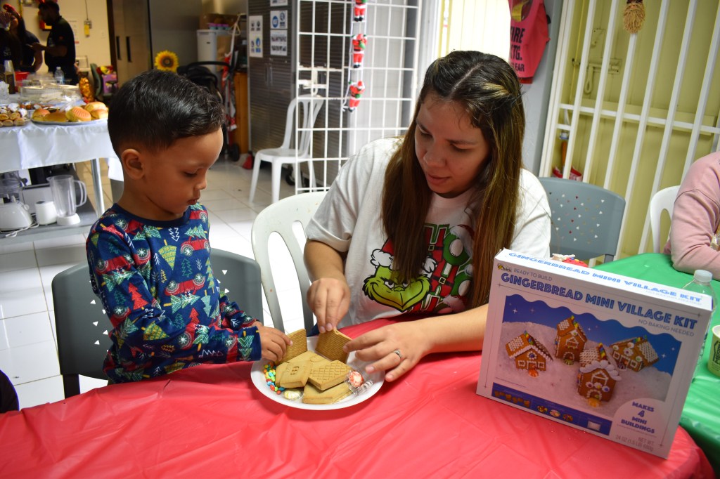 Posteriormente, llevaron a cabo una actividad en las que los niños(as) debían crear una casa de jengibre juntos a sus familiares. Finalmente, procedieron a la entrega de obsequios a cada uno de ellos(as). Esta actividad simboliza el cierre de clases y la satisfacción de un semestre productivo y de mucho aprendizaje.