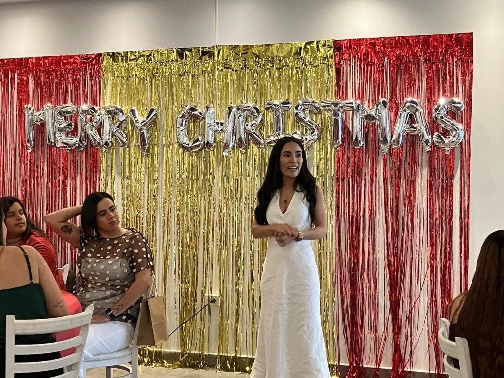 Para sorpresa de los presentes, Stephanie Ávila aprovechó el encuentro para completar una dinámica que realizó durante el almuerzo de Acción de Gracias de noviembre. En aquella ocasión, los empleados tenían que seleccionar una lámina y, más adelante, se enteraron que debían pintar la misma en un canva que les fue entregado. ¡El resultado fue magistral!