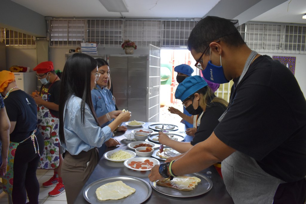 En la mañana de hoy, la reconocida chef Yamilette, visitó el taller de cocina de la FPSD para enseñarles a elaborar una pizza personal. Y como la creatividad de los participantes no conoce límites, hubo algunos que confeccionaron su pizza en forma de cuadrado y hasta de corazón.
