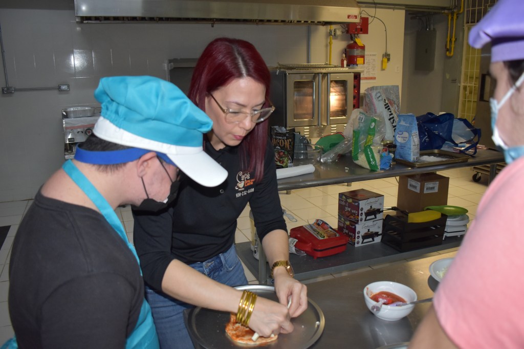 Cada participante, decidió la forma de la pizza, si quería queso en el borde y qué ingredientes deseaba. Hubo algunas de queso solamente y otras con pepperoni y tocineta. Una vez estuvieron listas, pasaron al salón comedor y degustaron sus respectivas creaciones. La adiestradora de empleo, Betsy Gordon, también estuvo presente para colaborar junto a la directora de los talleres, Yasmín Rodríguez.