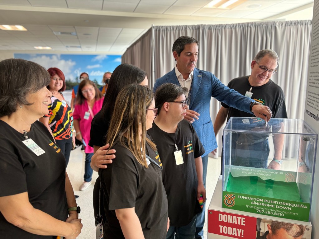 Empleados(as) de Aerostar PR también estuvieron presentes y vistieron la camiseta oficial para el Día Mundial del Síndrome de Down en apoyo a la entidad. El corte de cinta fue un acto emotivo y posteriormente, el señor Jorge Hernández realizó el primer donativo en la alcancía, seguido de otras personas. Asimismo, personal del Programa SJU Pawner estuvieron junto a tres mascotas que ofrecieron relajación y alegría a los presentes.