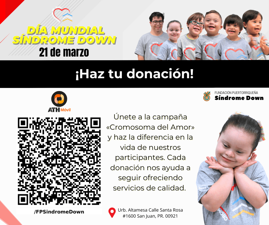 El próximo 21 de marzo, el mundo se une para celebrar el Día Mundial del Síndrome Down, una fecha especial para promover la inclusión, el respeto y la equidad. Este año, en la Fundación Puertorriqueña Síndrome Down, nos unimos a la celebración con nuestra campaña «Cromosoma del Amor», resaltando que la diversidad nos enriquece y que cada persona con síndrome Down es sinónimo de amor puro.